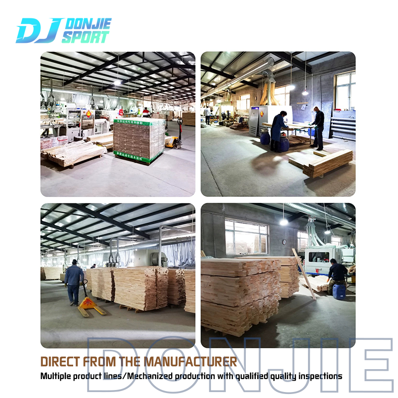 Wear Layer: A 3-6mm thick layer of solid hardwood (Maple or Pine) that directly interacts with players and the ball. It is sanded and finished with a UV-cured polyurethane coating (2-3 coats) to enhance scratch resistance, traction, and easy cleaning. The coating is non-slip but not overly abrasive, preventing shoe damage and reducing friction burns.
